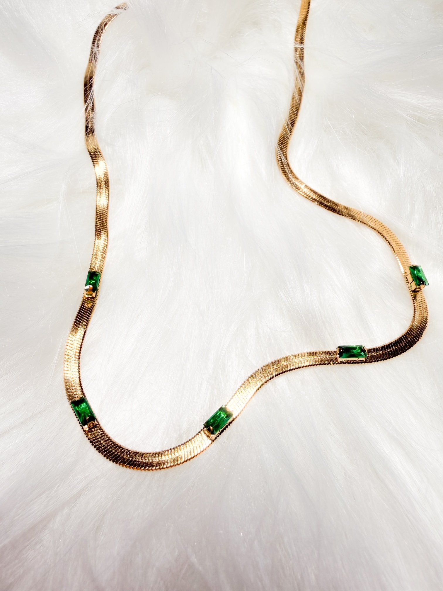 Gold plated titanium steel snake chain with beccarite zircon emerald stones