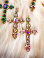 Large gold-plated cross drop earrings.