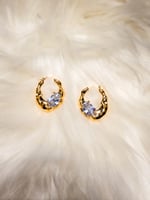 Gold electroplated brass earrings. Real gold ear buckle with zircon accent stone.